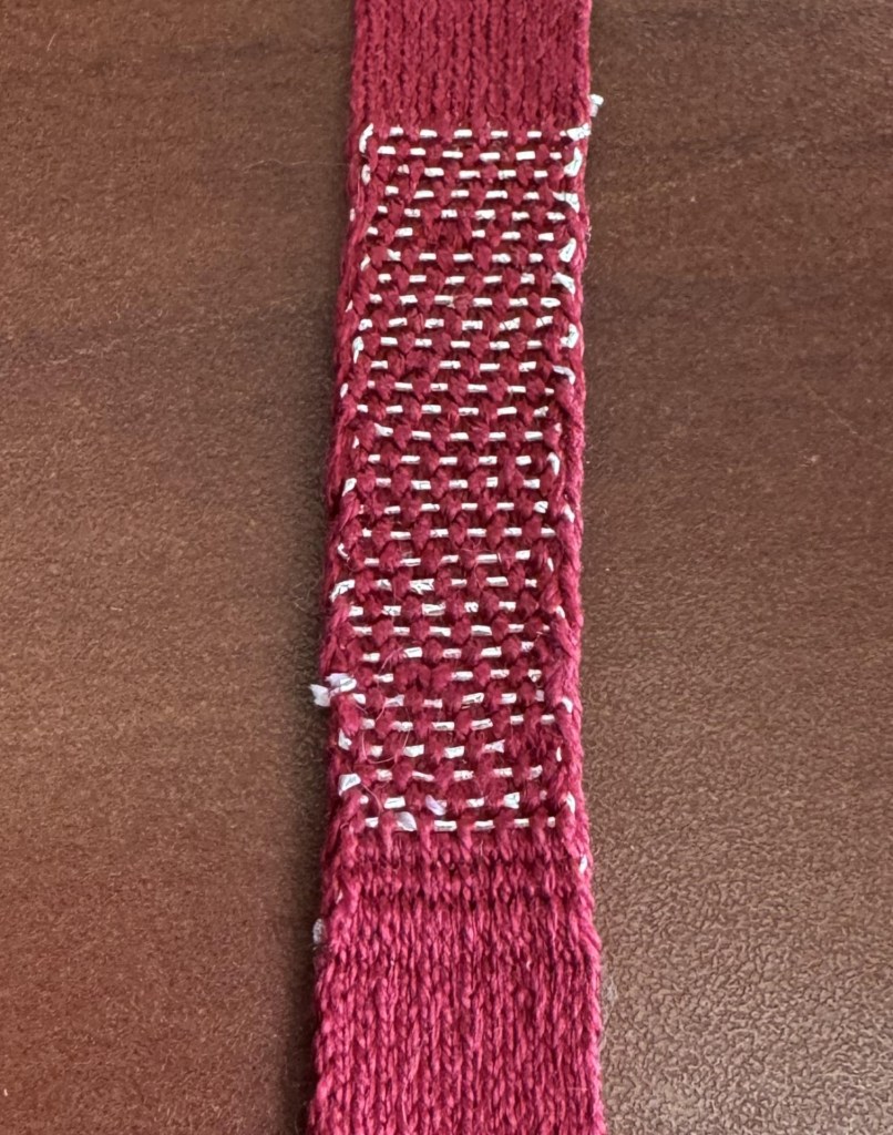 Single strand of Krenik Japan Thread #7 with single picked brocade shed.