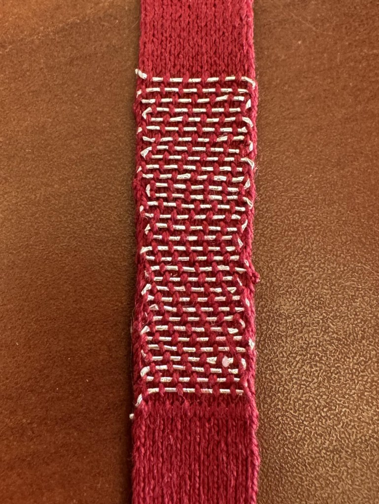 Result: This looked sloppy, especially since the extant band doesn’t have selvedges.