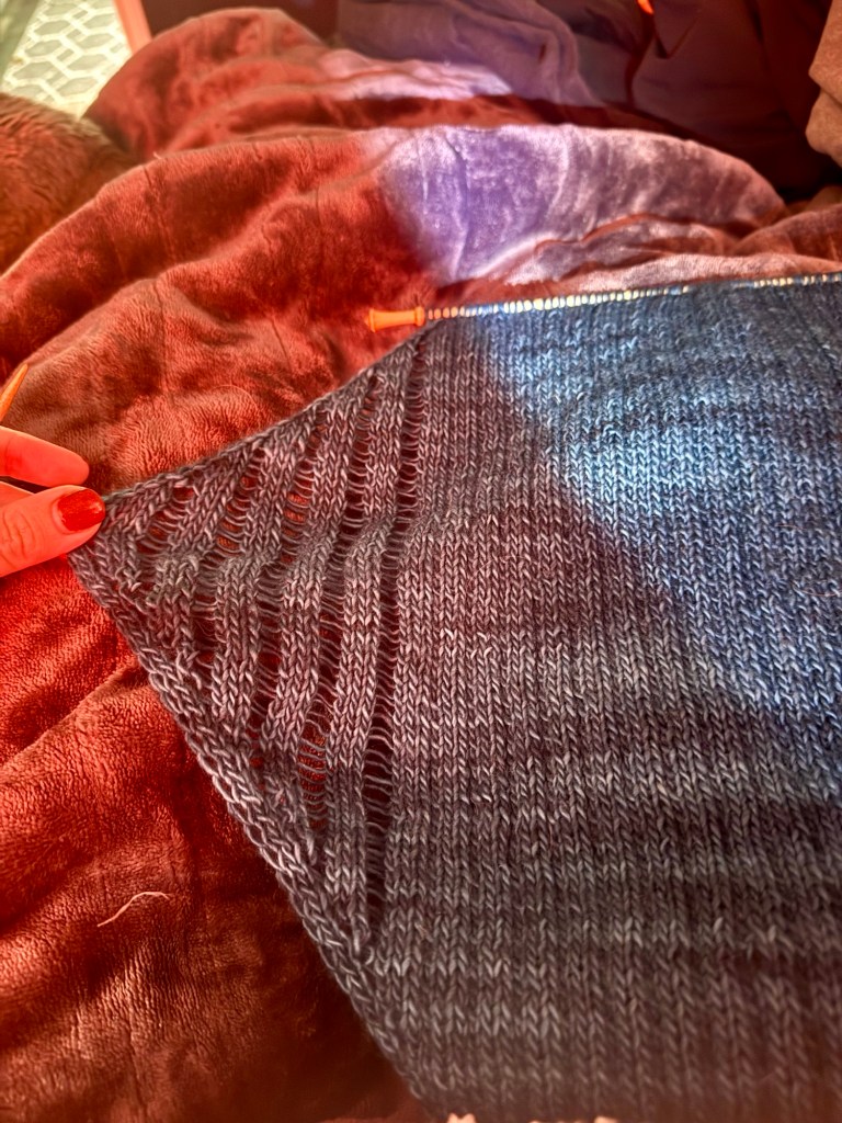 Lucky me, I’m a lapsed recovering fiber addict, and in another life I used to go on Yarn Hops (think Bar Crawls, but yarn stores) and have picked up more gorgeous yarn than I could use in half a lifetime. And everything was always too pretty to actually use, so I have several totes in our basement and I was able to find something to work up the pattern with.